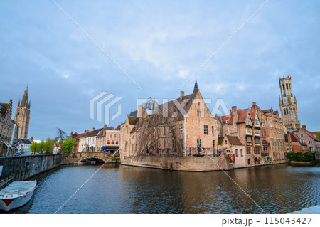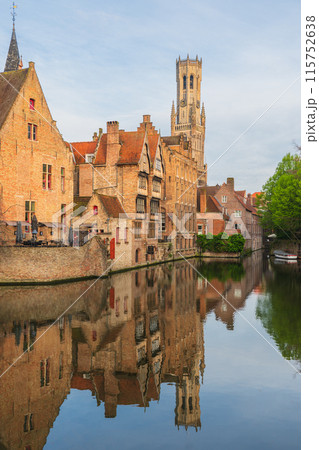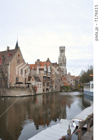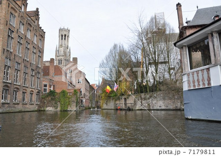 ベルギー ブルッヘのダイフェル運河と鐘楼