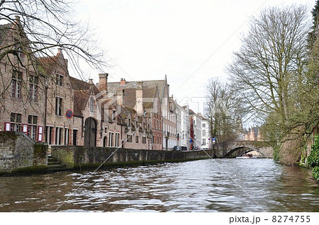 ベルギー ブルッヘのダイフェル運河のボート乗り場