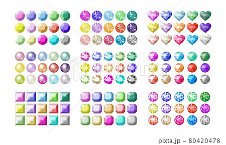 宝石型のラインフレーム、枠、見出し素材のイラストセット カラーバージョン