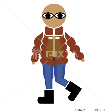 ダウンジャケットを着た男性 寒気 白背景