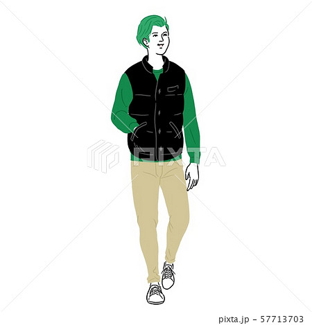 ダウンベストを来て散歩する若い男性