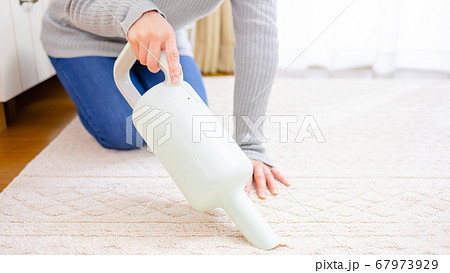 ラグに掃除機をかける主婦 顔なし コピースペース