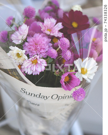 ピンクのコスモスとアカツメクサの花束