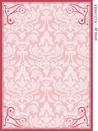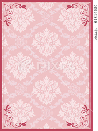 ダマスク柄背景とアンティークのフレームのテンプレート・フォーマット_A4サイズピンク系