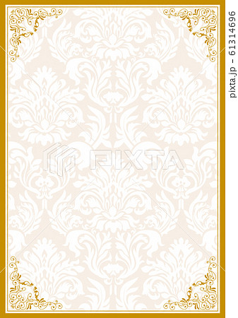 ダマスク柄背景とアンティークのフレームのテンプレート・フォーマット_A4サイズ イエロー系