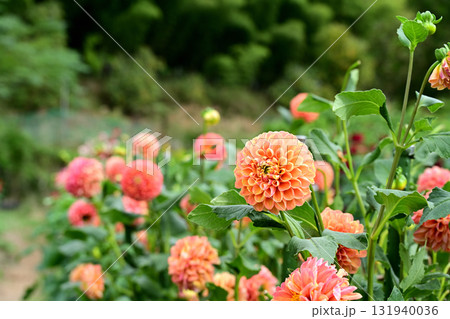 秋の風景 鮮やかに咲いたダリア 山形県川西町