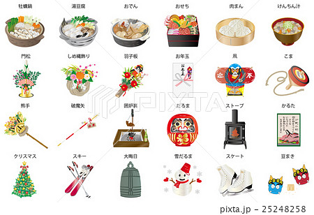 冬シーズンのアイコン(線画カラー)のイラストセット