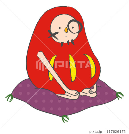 顔に落書きされたダルマの着ぐるみの人