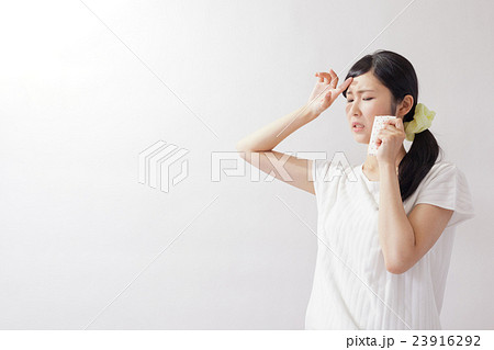 ハンカチで汗を拭く女性、憂鬱、ダレる