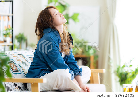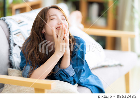 女性 リビング スマホ ライフスタイル ニューノーマル