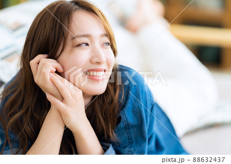 女性 スマホ リビング ライフスタイル ニューノーマル