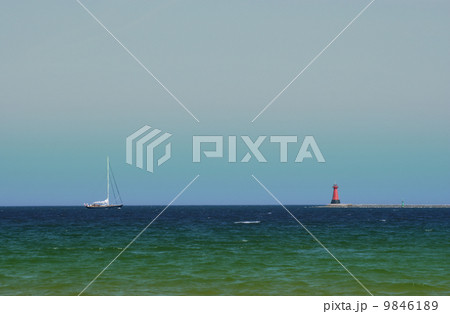 Sea, sky, yacht and lighthouse