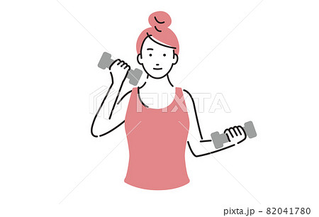 楽しそうにダンベルを持つ女性のイラスト