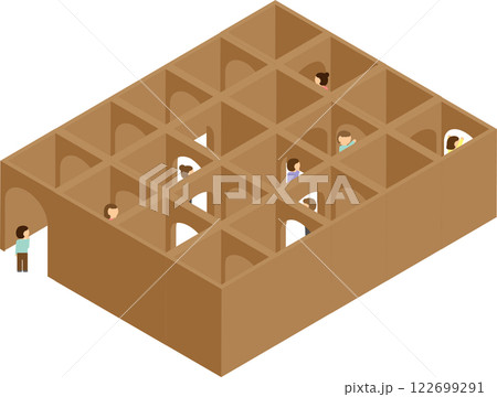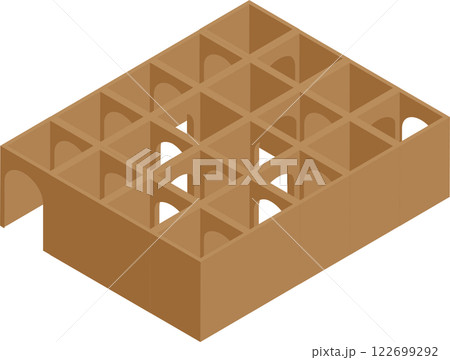 アイソメトリックな段ボールでできた迷路のイメージ素材