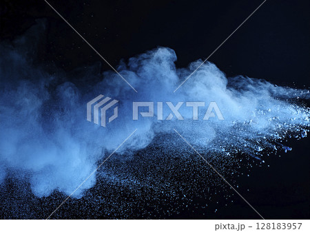 赤と青の粉が煙の様に舞う 濃い赤青 黒背景