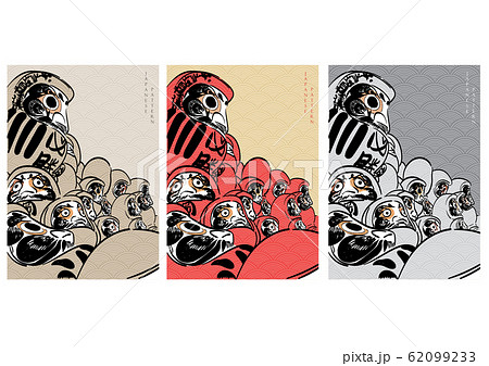 Daruma background with Japanese wave pattern vector. Lucky charm doll template.
