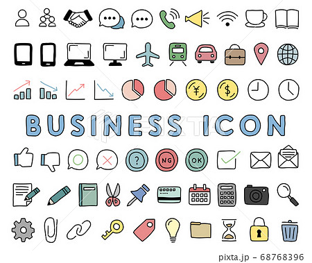 手書きのビジネスのアイコンセット/イラスト/コミュニケーション/仕事/メール/電話/交通/アイディア