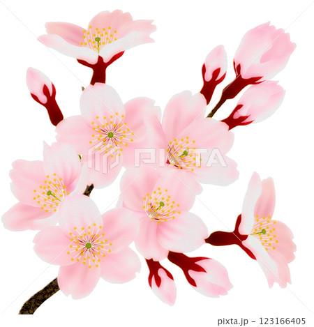枝に咲く桜の花のイラストセット