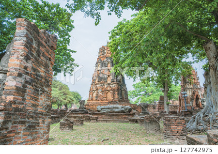 タイ、アユタヤの世界遺産、ワットマハタート(仏像と崩壊した仏塔)