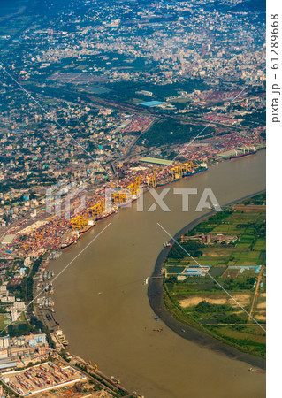 バングラデシュ・チッタゴンのカルナフリ川 空撮