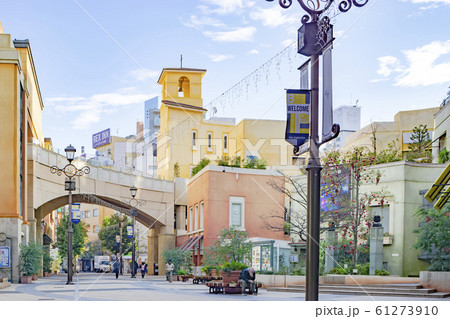 日本の川崎都市景観 ラチッタデッラ(川崎駅東口、イタリアのヒルタウンをモチーフにした街)