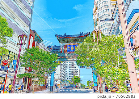 [アニメ風] 神奈川県横浜 中華街 朝陽門(青龍門)