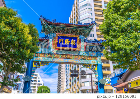 日本の横浜都市景観 横浜中華街を望む(朝陽門)