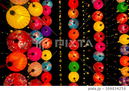 China lanterns on roof to celebrate Chinese 2024 dragon new year