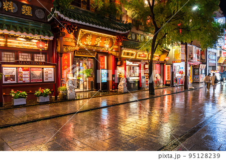 日本の横浜都市景観 横浜中華街(夜景)=3月14日