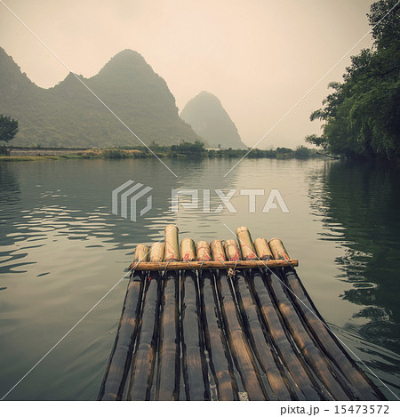 China Guilin Yangshuo bamboo rafting in the beautiful "Yulong River".