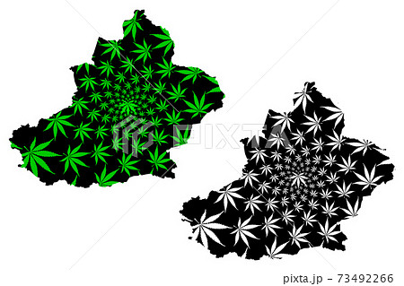 Xinjiang Uyghur Autonomous Region (Administrative divisions, People's Republic of China, PRC) map is designed cannabis leaf green and black, Xinjiang map made of marijuana (marihuana,THC) foliage