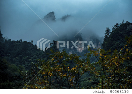 Amazing landscape of mountain and forest in the foggy at Wulingyuan, Hunan, China. Wulingyuan Scenic and Historic Interest Area which was designated a UNESCO World Heritage Site in China