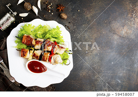 meat pork and beef skewers on the grill