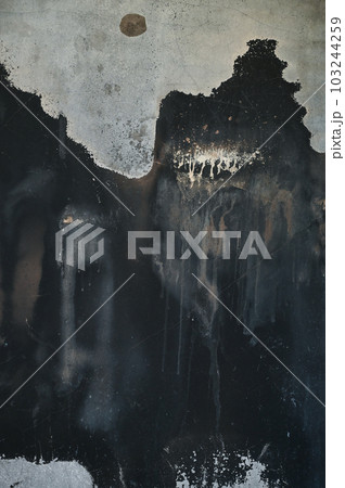 black dirty wall was burn from fire, construction industry