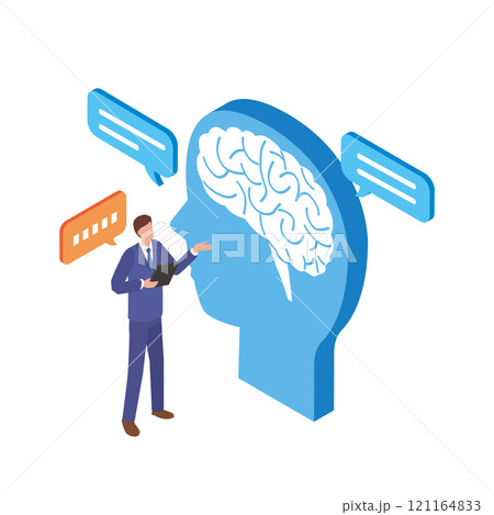 マーケティング担当者の活動を手助けするAI。マーケティングオートメーションのイメージイラスト素材。