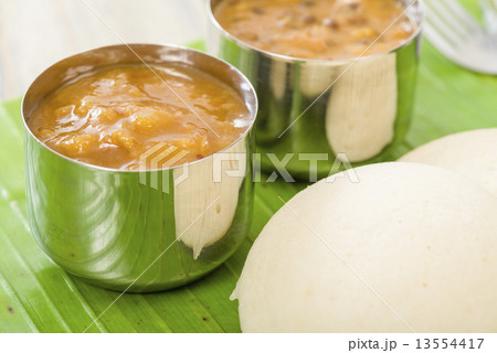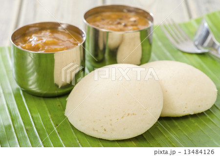 Idli, Chutney and Sambar - Indian steamed rice cakes and sides