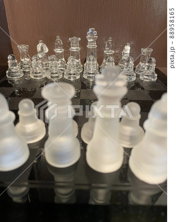 日が差すリビングルーム 大理石で出来たエスニックなチェス盤と駒