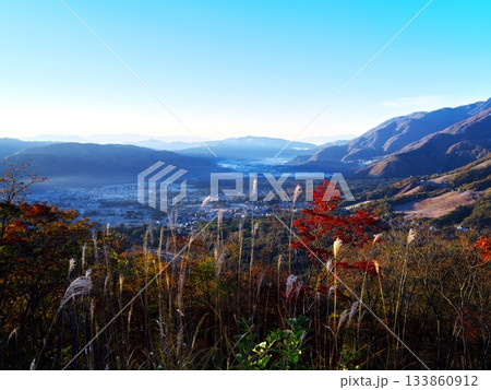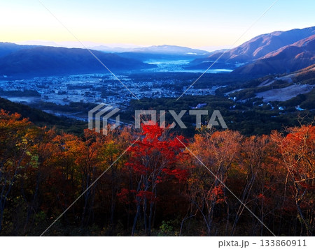 黎明の白馬村を白馬岩岳マウンテンリゾートのチャバティ白馬付近から望む
