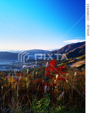 秋の白馬岩岳マウンテンリゾート 白馬ヒトトキノモリから黄昏行く白馬村を臨む