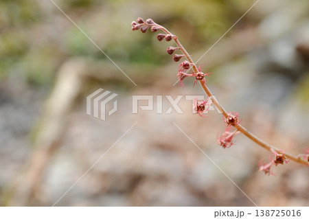 赤い雄しべが立つチャルメルソウ 林床に咲く小さな春の花