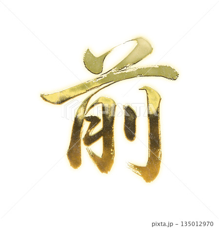 黄金の漢字「前」、書道の毛筆の文字、アルファチャンネル