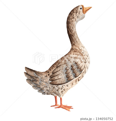Watercolor illustration of a farm goose, perfect for children books, educational resources, farm designs, packaging, and rustic decorative prints. Painted with soft textured watercolor layers
