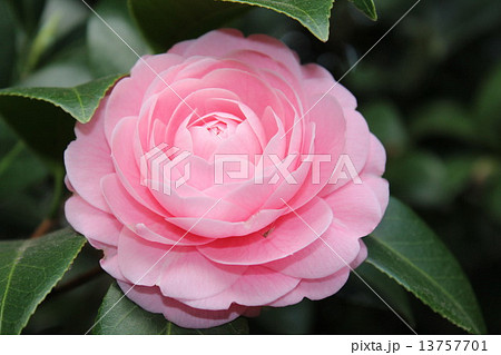 ピンクの千重咲きが美しい乙女ツバキの花。