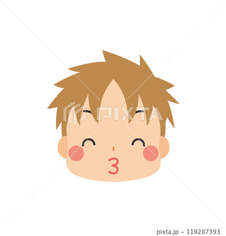 笑顔でキスをする可愛い小さな男の子の絵文字イラスト アイコン 顔 表情 白背景 ベクター