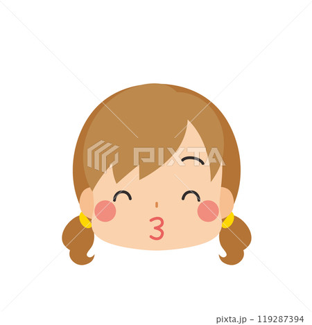 笑顔でキスをする可愛い小さな女の子の絵文字イラスト アイコン 顔 表情 白背景 ベクター