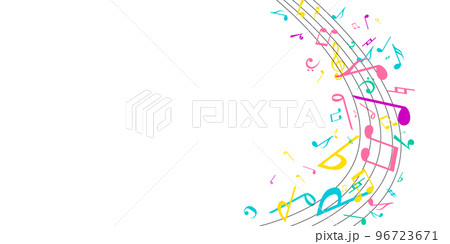 カラフルメロディー音楽、音符の背景イラストベクター素材