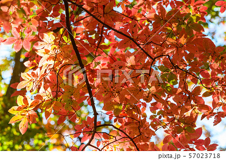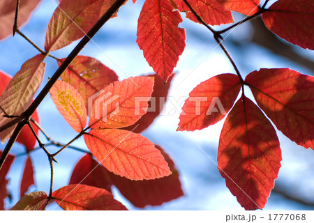 メグスリノキの紅葉 透過光で一層鮮やかに見える