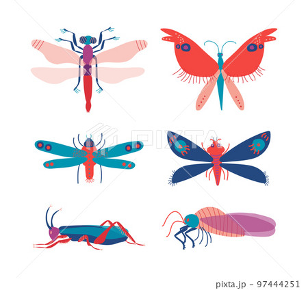 Insects as Hexapod Flying Creature with Jointed Legs and Pair of Antennae Vector Set