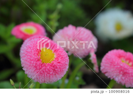 春 花 デージー ガーデニング 花壇 花畑 アップ ヒナギク