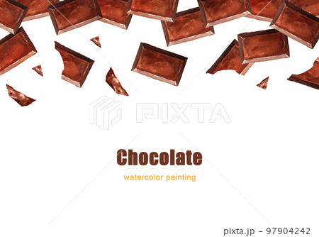 チョコレートのかけらが重なった手描き水彩画